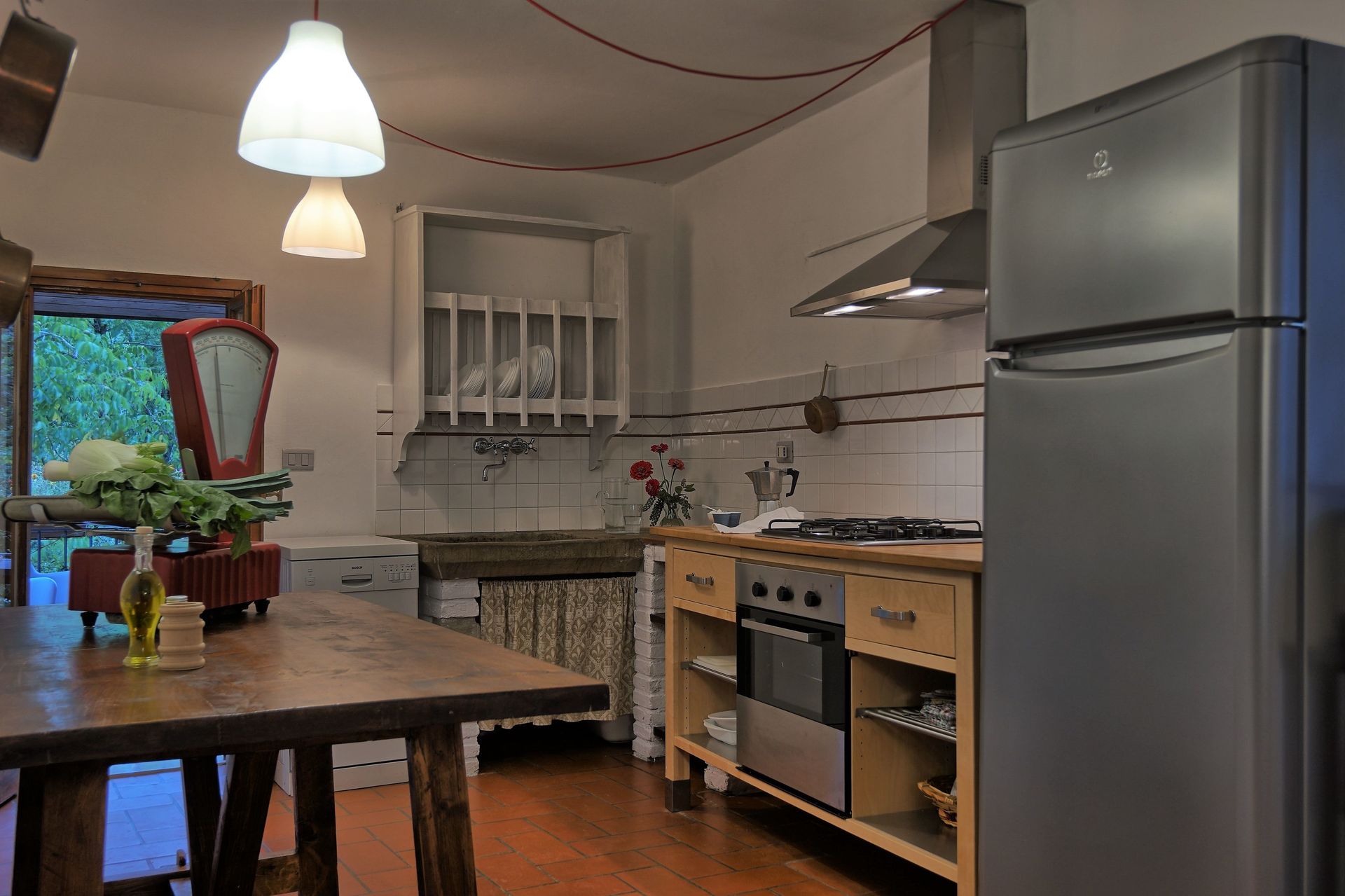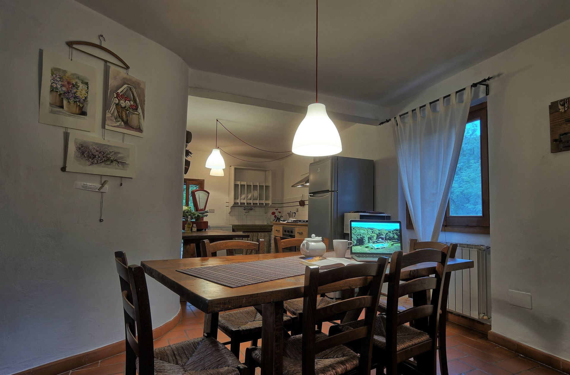 Die Einrichtung besteht aus typisch toskanischen Möbeln mit antiken Stücken (19. Jh.).