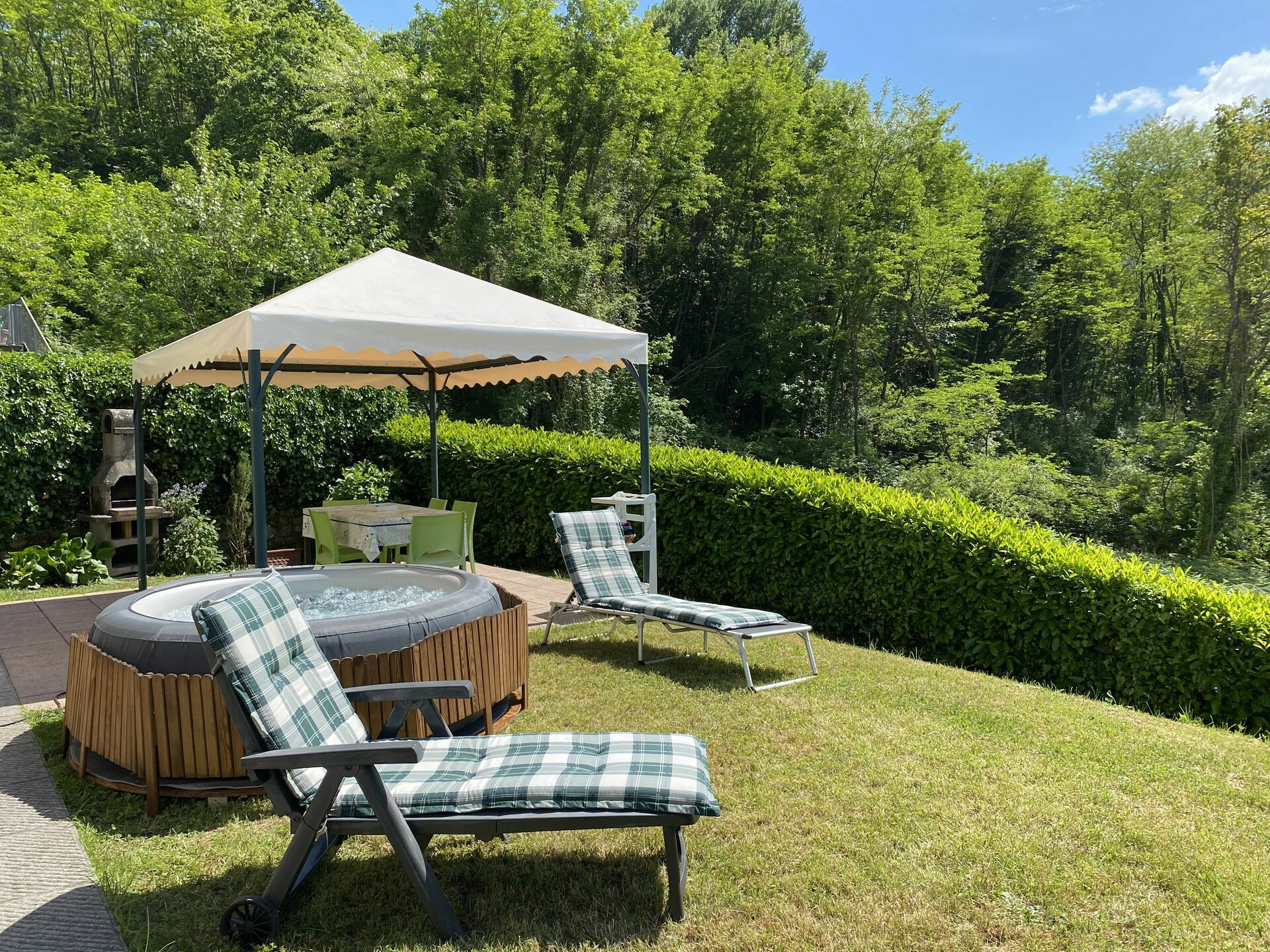 Garten: Schwimmbad (Breite: 1.5m, Länge: 1.5m, Tiefe: 0.7m, Außen, beheizt), WiFi Internet, Grill, sechs Esstische, Gartenmöbel.