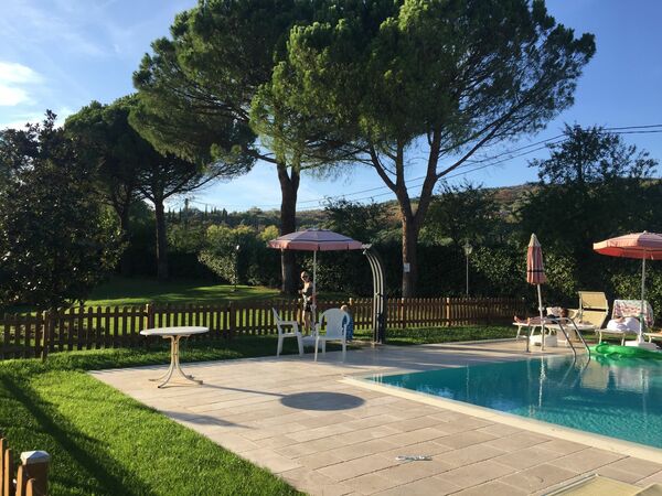 Schöner Besitz aus 8 Apartments bestehend und einer kleinen freistehenden Villa mit privatem Garten. Der Besitz befindet sich in der Nähe der Schnellstrasse die Siena mit Perugia verbindet. Der gesamte Besitz ist von einem grossen, sehr gepflegten Garten umgeben indem sich auch das grosse Schwimmbad für die Gäste aller Apartments befindet, indem man sich wunderbar an heissen Sommertagen abkühlen kann. Für jedes Apartment befinden sich in dem Garten Tisch und Stühle um draussen essen zu können.