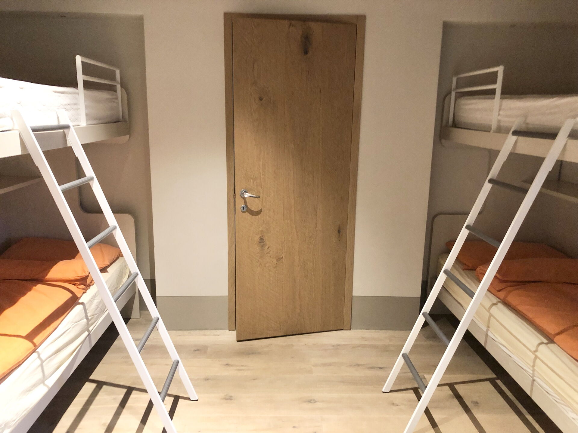 Schlafzimmer mit Bad 2 (19 m2): zwei Etagenbetten, WiFi Internet, Fliegengitter, Waschbecken, WC, Dusche.