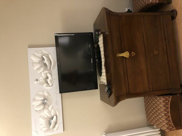 Wohnzimmer: Doppel-Schlafsofa, Satelliten-TV.