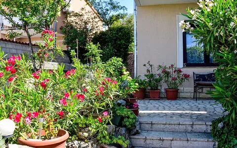 Das Apartment-Haus „Stana" verfügt über ein großzügiges Außengelände von 500 m² mit üppiger Bepflanzung. Eine 15 m² große Terrasse ist mit Gartenmöbeln ausgestattet und bietet einen einladenden Platz zum Entspannen. Ein Barbecue steht den Gästen zur Verfügung.