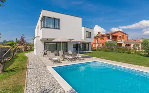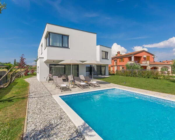 Villa Paolo liegt im charmanten Weiler Stancija Vinjeri, etwa 2 km vom Zentrum Novigrades in Kroatien entfernt, und ist eine moderne zweistöckige Villa für Ferienaufenthalte. Das elegante Anwesen befindet sich auf einem vollständig eingezäunten Privatgrundstück von 1.100 m² und verbindet zeitgenössisches Design mit einer einladenden Atmosphäre. Die Umgebung ist geprägt von einem gepflegten Garten mit Rasen sowie einem Bio-Garten, der saisonale Früchte und Gemüse bietet. Das Anwesen liegt in der Region Umag und eignet sich ideal für einen erholsamen Aufenthalt.
