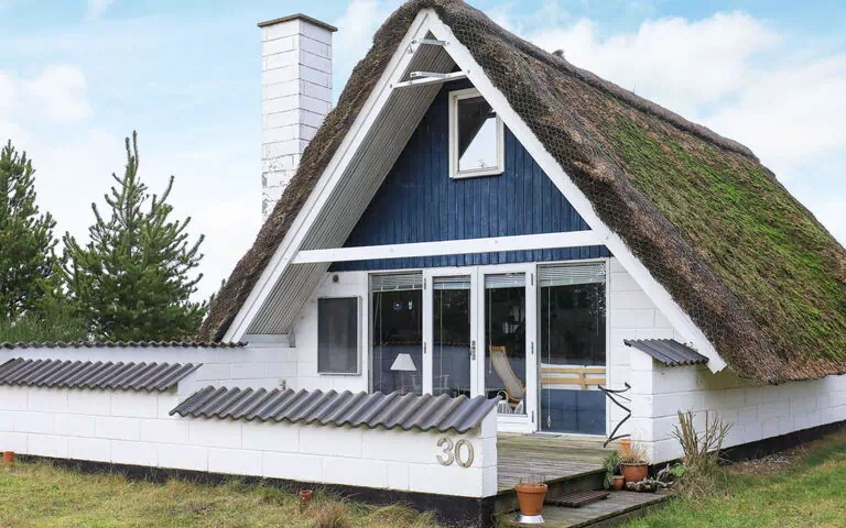 Dieses Ferienhaus liegt im ruhigen, landschaftlich attraktiven Gebiet von Lodbjerg Hede, am Ende einer Straße und mit Aussicht auf offene Felder. Küche, Wohn- und Essbereich sind offen kombiniert und mit einem Holzofen ausgestattet. Vor dem Wohnzimmer liegt die Südterrasse. Im Erdgeschoss befinden sich weiterhin ein Schlafzimmer und das Bad. Die beiden anderen Schlafzimmer liegen im 1. Stock. Vom Grundstück aus bietet sich ein schöner Blick auf die Umgebung, mit den Dünen weit im Hintergrund.