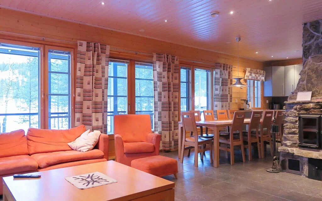 170 km nördlich von Rovaniemi, in Levi, in der Nähe des Golfplatzes und des Nordost-Skihangs. Zweistöckiges Doppelblockhaus, Baujahr 2006. Im Erdgeschoss gibt es geräumige Wohnküche, Schlafzimmer mit 2 Betten (vom Schlafzimmer aus Zugang zum Duschbad in der Sauna), Sauna, Duschraum (2 Duschen), Ankleideraum, separate Toilette und überdachte Terrasse an der Seite des Fjells. Im Obergeschoss 4 Schlafzimmer mit je 2 Einzelbetten, im Obergeschoss auch 2 Einzelzimmer. Alle Schlafzimmer im Obergeschoss haben ein eigenes Bad mit WC und Dusche. Ein Schlafzimmer hat einen eigenen Balkon. Der Esstisch im Haus ist für zwölf Personen geeignet. Es gibt drahtlose Internetverbindung (Breitband). Lager- und Wartungsmöglichkeiten für Golf- und Skiausrüstung in separater Garage. Saunaabteilung mit überdachter Terrasse. Zwischen den Ferienwohnungen gibt es ein Konferenz- und Speisesaal für 24 Personen. Im Zimmer gibt es auch eine Miniküche und eine Videobox. Der Raum kann zu einem gesonderten Preis gemietet werden (die benachbarte Ferienwohnung kann auch den gleichen Raum mieten und somit wird dieser Raum nach Verfügbarkeit vermietet). Wenn die Kunden beide Ferienwohnungen des Hauses buchen, kann der Konferenzraum kostenlos genutzt werden. Die Lage der Wohnung ist ideal für Ski- und Golfbegeisterte. Der Nordostlift ist nur 200 m entfernt, ebenwo wie das Büro des Golfplatzes. Der Golfplatz Nr. 18 befindet sich einige 10 Meter vor der Wohnung. Die Ferienwohnung bietet den Blick auf den See Taalojärvi, den Golfplatz und Levitunturi. Die Ferienwohnung ist auch für Gruppen geeignet, zwei Ferienwohnung bieten Platz für insgesamt 24 Gäste (nebenan ist die andere Wohnung des Besitzers 13578). Im Sommer und Herbst können Sie die Verfügbarkeit von Golftickets für € 15 pro Spiel (Standard € 50) und 3 "Greenfees" pro Tag/Wohnung anfragen. Levi Zentrum 4 km.