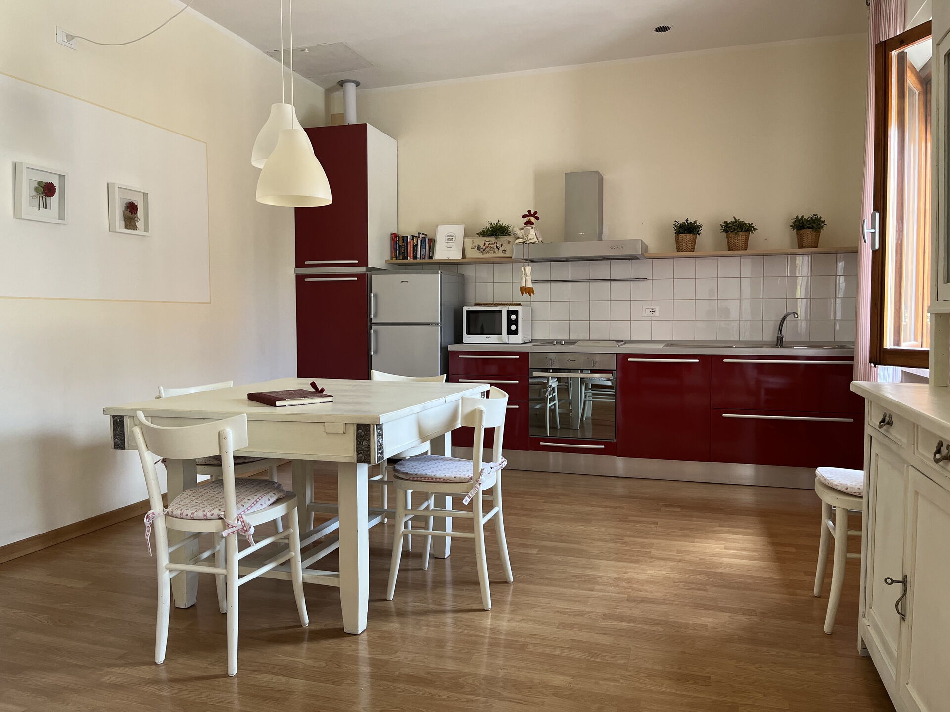 Wohnküche (25 m2): gut ausgestattete Küche, Esstisch (Personen: 6), Spülmaschine, Kühlschrank, Tiefkühler, Mikrowelle, Herd, Ofen, Toaster, Bügeleisen, Italienische Kaffeemaschine, Amerikanische Kaffeemaschine, zwei Sessel, WiFi Internet, TV, tragbarer Ventilator, Ausgang auf den Balkon.