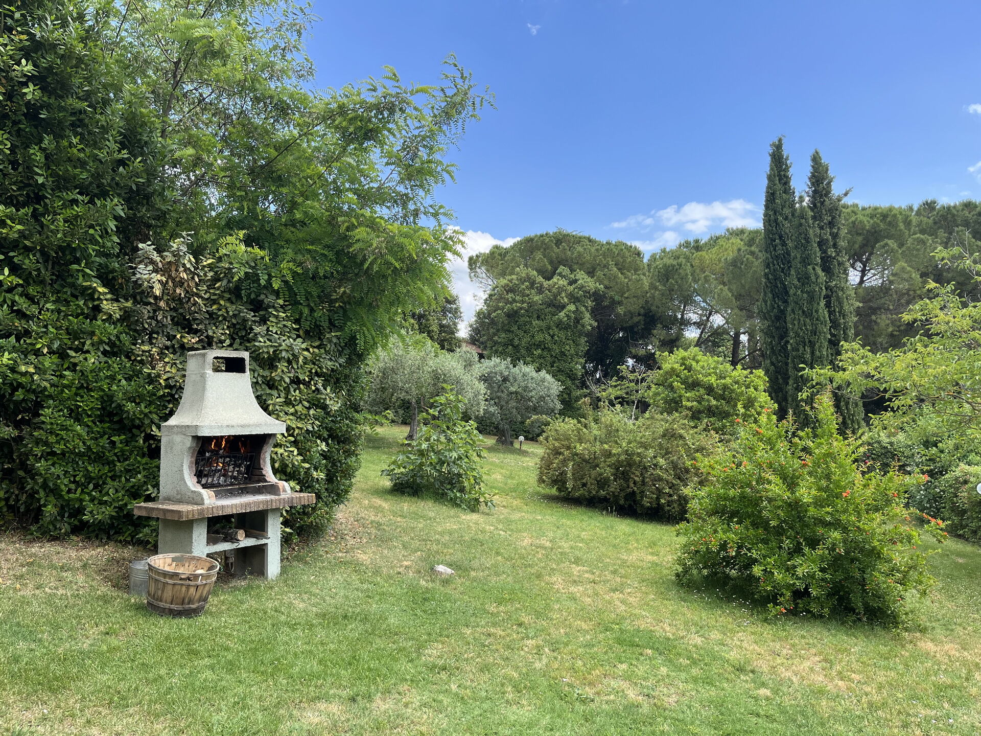 Garten (2000 m2): Schwimmbad (privat, Breite: 5m, Länge: 10m, max. Tiefe: 1.4m, min. Tiefe: 1.4m, Tiefe: 1.4m, Außen), Grill, Außenbereich für das Essen im Freien, zwei Esstische, Gartenmöbel, zehn Sonnenliegen.