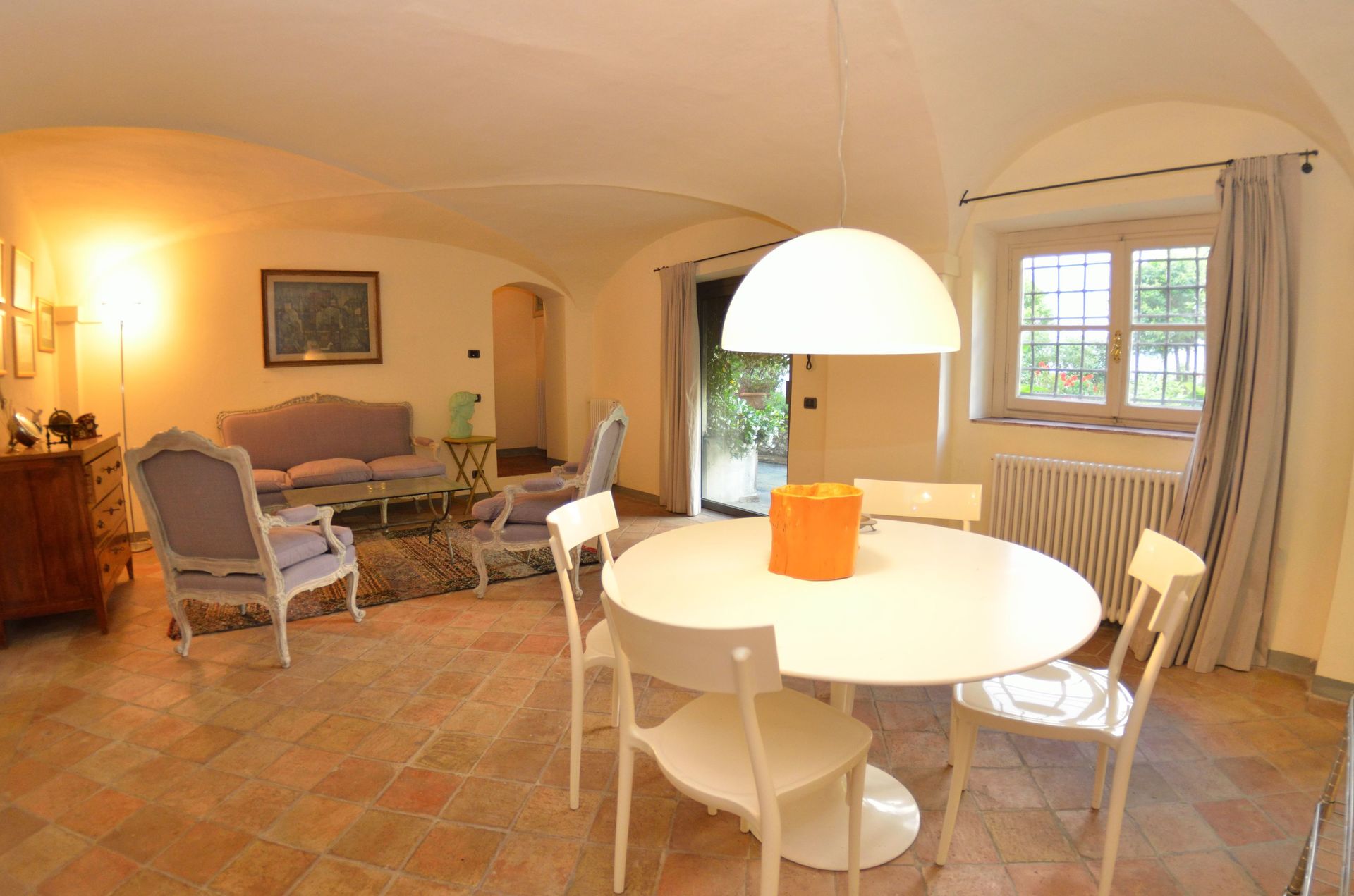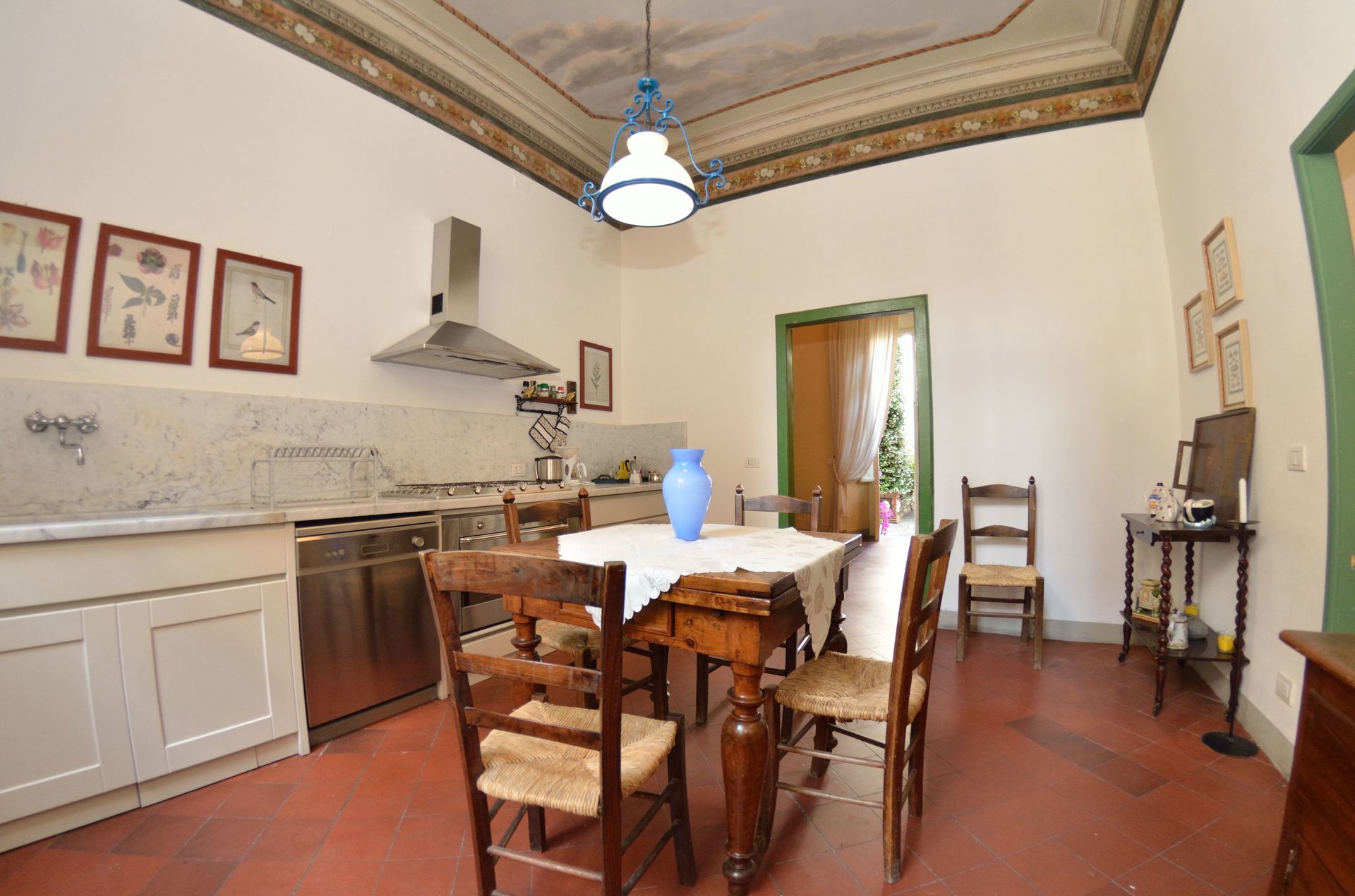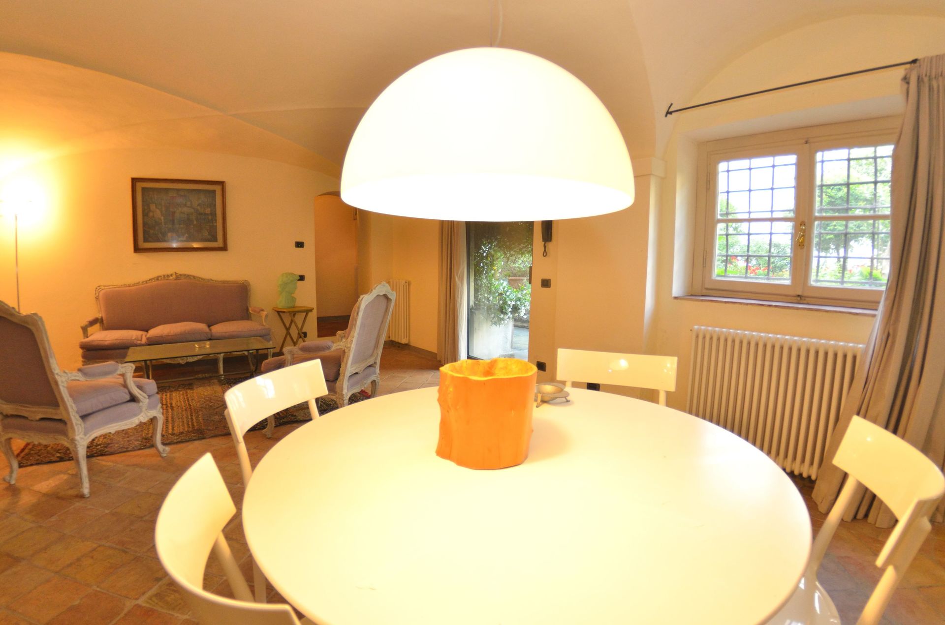 Esszimmer: Esstisch, Ausgang auf den Garten.
