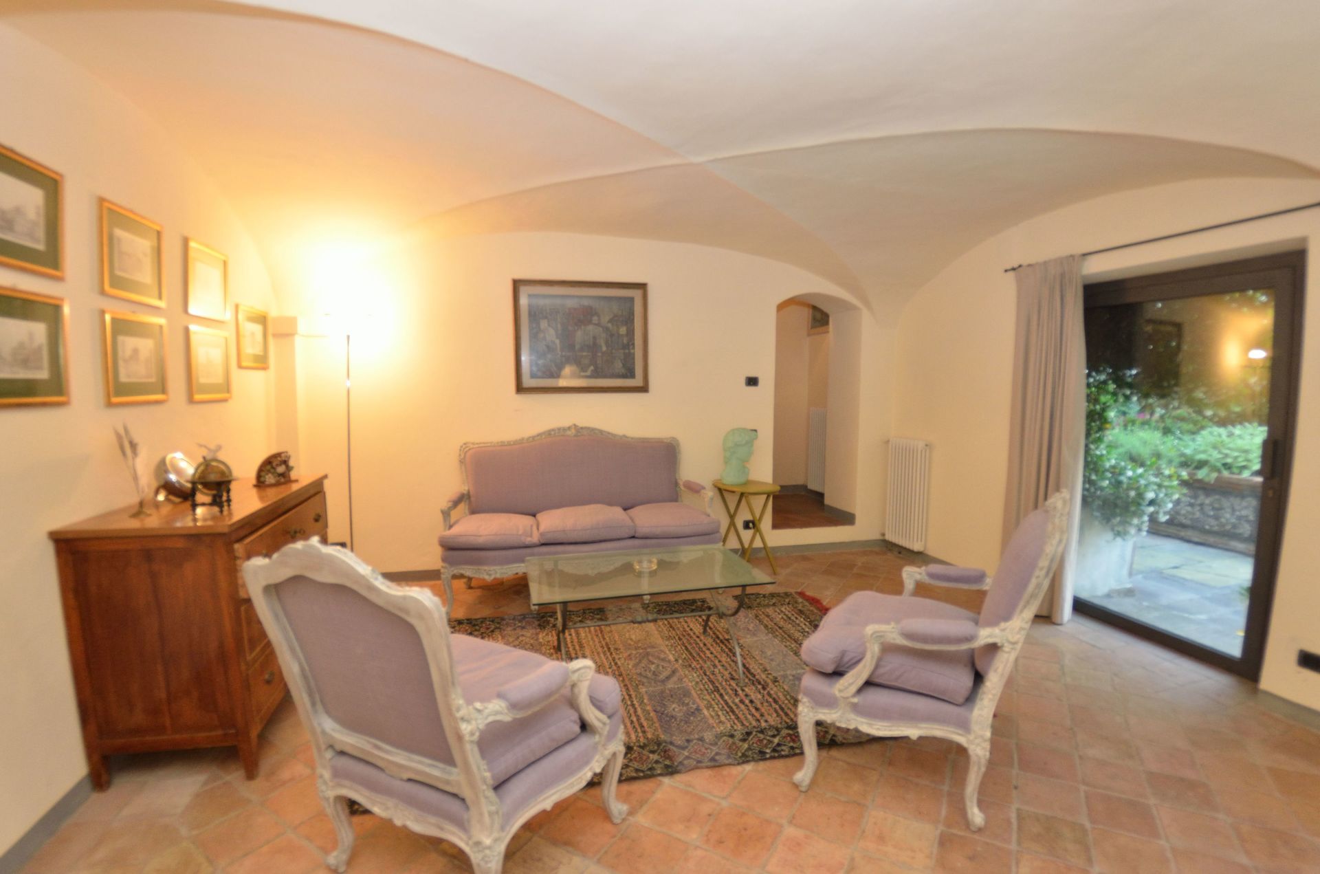 Wohnzimmer 1: Sofa, Sessel, Ausgang auf den Garten.