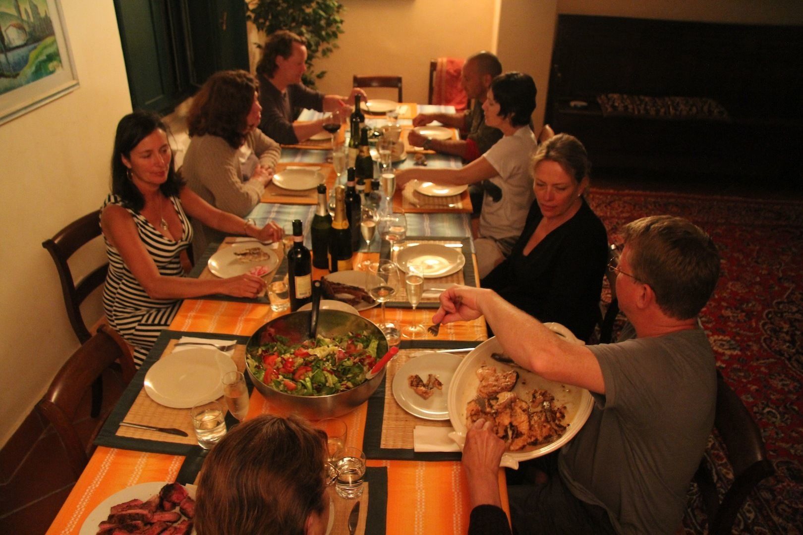 Allem was Sie für Ihr erstes Abendessen am Ankunftstag benötigen: hausgemachte Pasta, Parmesan, Brot und Salat, Chianti Wein und Wasser;