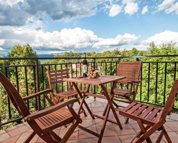 Das Zweifamilienhaus „Tre Rose" liegt in der ruhigen Landschaft von Zvoneće in Kroatien auf erhöhter und sonniger Lage. Das Anwesen befindet sich etwa 13 km von der Küstenstadt Rijeka entfernt. Die Unterkunft bietet einen privaten Aufenthalt in einer ländlichen Umgebung abseits des Alltags.