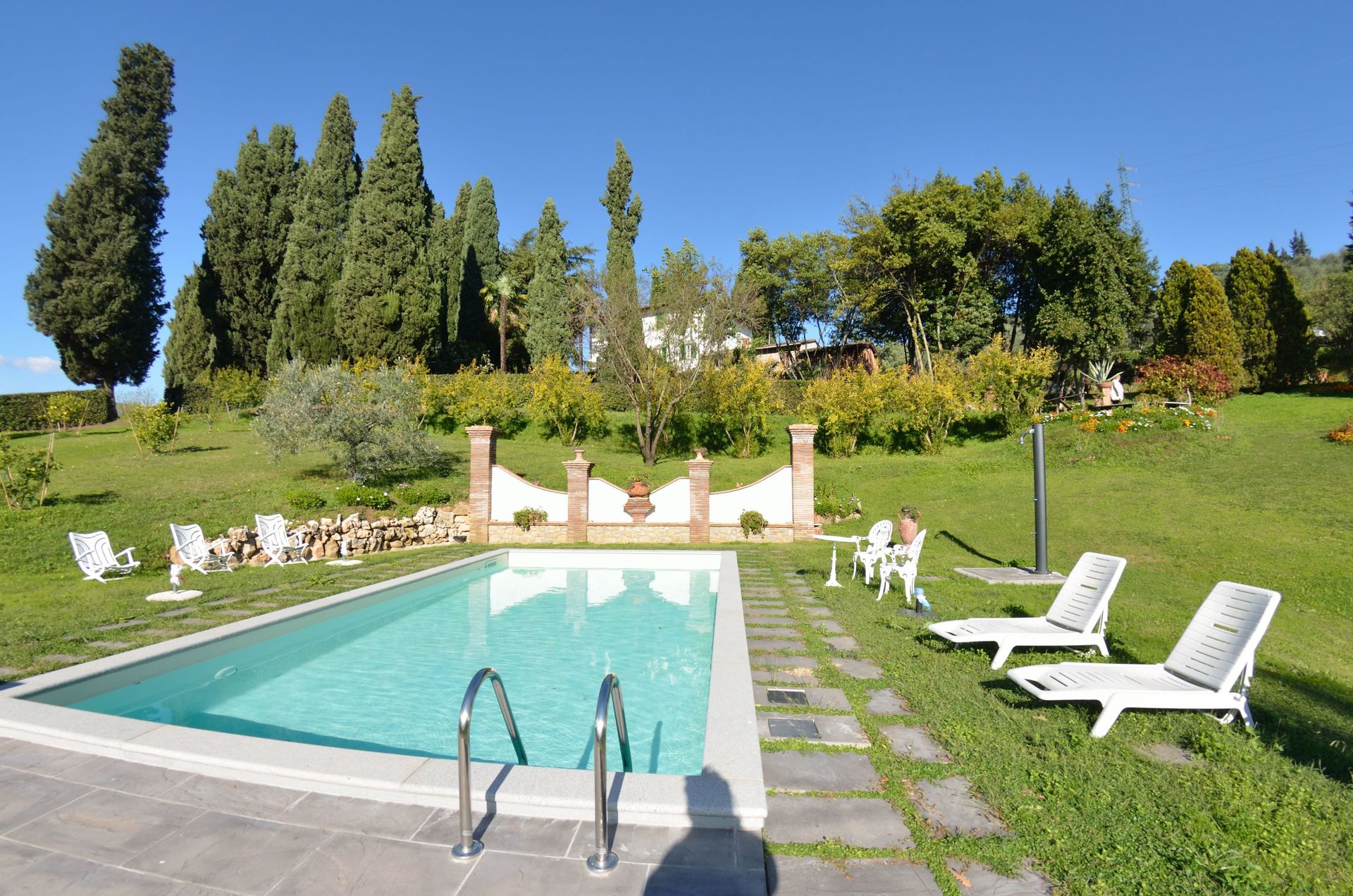 Der Besitzer wohnt in der Dependance, die an das Ferienhaus angebaut ist, aber ihren eigenen Eingang hat – die Privatsphäre der Gäste ist selbstverständlich garantiert. Der Garten und der Swimming Pool stehen ausschließlich den Gästen zur Verfügung.