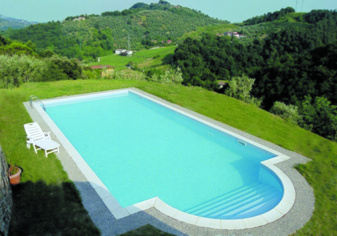 Garten: Schwimmbad (Breite: 6m, Länge: 13m, Tiefe: 1.6m), Gartenmöbel, sieben Sonnenliegen.