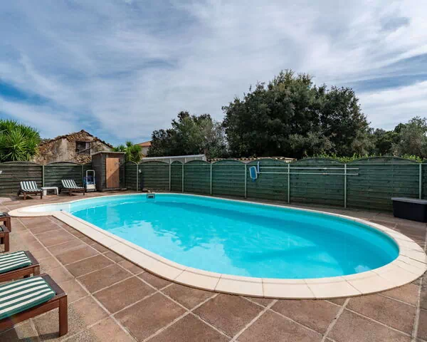 Der Garten ist vollständig eingezäunt und erstreckt sich über 2.000 m². Er ist mit reifen Bäumen und einer üppigen Wiese ausgestattet und schafft eine private und malerische Umgebung. Der gemeinsam genutzte Swimmingpool misst 9 x 5 Meter und ist vom 1. Juni bis 30. September verfügbar; er ist mit einer Abdeckung ausgestattet. Eine Außendusche steht ebenfalls zur Verfügung und ergänzt den Poolbereich.