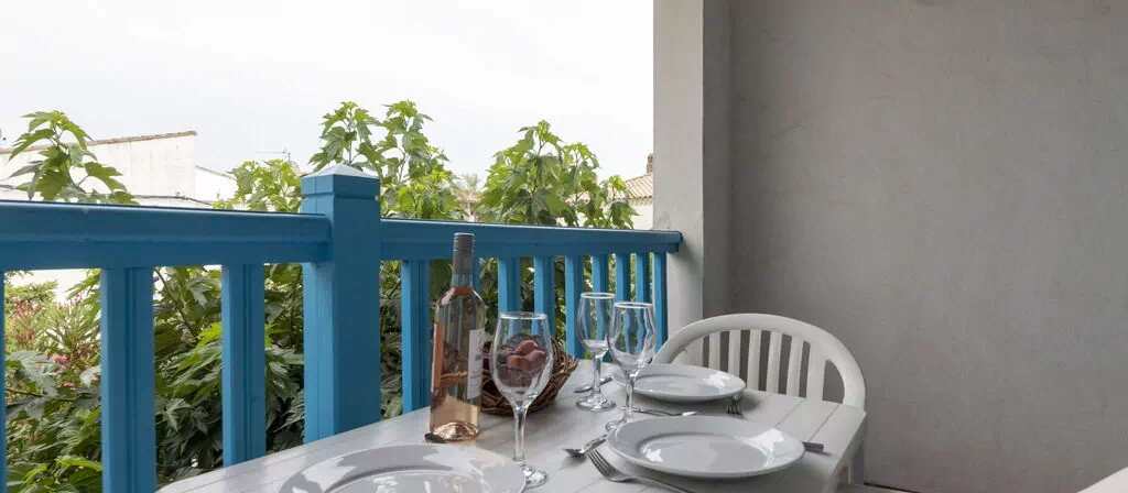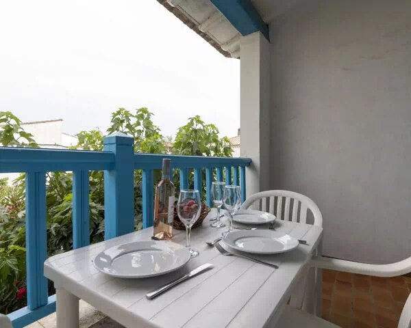 Die Ferienwohnung "Soleil Camarguais" umfasst 40 m² auf 2 Ebenen und bietet Platz für maximal 4 Gäste. Sie verfügt über 1 Schlafzimmer und 1 Bad. Im Erdgeschoss befindet sich der Wohn- und Schlafbereich mit einem Doppelbett (140 cm × 190 cm), einem Esstisch und direktem Zugang zu einem Balkon. Das erste Obergeschoss ist als offene Galerie ausgeführt und dient als zusätzlicher Schlafbereich mit 2 ausziehbaren Betten (je 80 cm × 180 cm). Das Bad ist mit Dusche und WC ausgestattet.