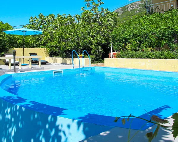 Das Ferienhaus „Stella" liegt im charmanten Weiler Kricina im Herzen Kroatiens, etwa 8 km vom Zentrum von Novi Vinodolski entfernt. Das Zweifamilienhaus steht auf einem sanften Hang innerhalb eines großzügigen, eingezäunten Grundstücks von 900 m² und ist von üppiger Bepflanzung umgeben, die Privatsphäre und natürliche Schönheit schafft. Das Ferienhaus verfügt über einen privaten Swimmingpool und einen umschlossenen Hof mit reichlich Platz für Aktivitäten im Freien.