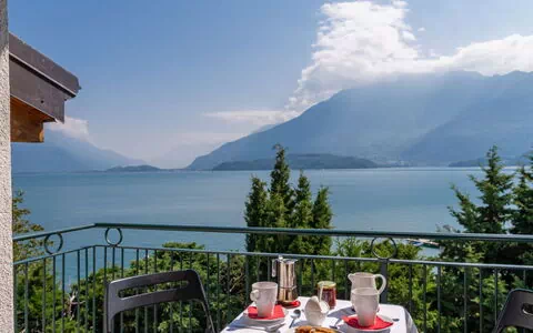 Die Ferienwohnung umfasst 100 Quadratmeter, verteilt auf ein Geschoss, und bietet Platz für maximal 5 Gäste in 2 Schlafzimmern und 2 Bädern. Das Wohn- und Schlafzimmer ist mit einem Doppelschlafsofa und einem Esstisch ausgestattet. Ein separates Schlafzimmer verfügt über ein Doppelbett, während ein drittes Zimmer mit 2 Einzelbetten ausgestattet ist. Die offene Küche ist vollständig ausgestattet und verbindet sich nahtlos mit dem Wohnbereich. Die Ferienwohnung verfügt über 2 Bäder: eines mit Badewanne und WC, das andere mit Dusche und WC. Ein kleiner Balkon ist vom Wohnbereich aus zugänglich, mit Terrassenmöbeln ausgestattet und bietet einen Panoramablick auf den See, die umliegenden Berge und den Monte Legnone (2609 Meter). Die gesamte Wohnung ist mit Parkettböden ausgelegt und verfügt über einen Abstellraum für zusätzliche Lagerung.