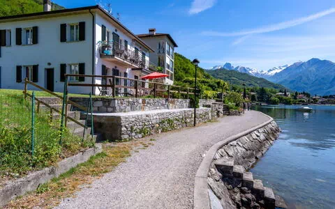 Mehrfamilienhaus "Patrizia", auf 2 Stockwerken. 4 Wohnungen im Ferienhaus. Im Ortsteil Cinque Case, 1.5 km vom Zentrum von Gera Lario, am Ortsrand, 49 km vom Zentrum von Lecco, 58 km vom Zentrum von Como, 20 m vom See, direkter Zugang zum Strand. Zur Mitbenutzung: Grundstück, Terrassengarten mit Bäumen, Wiese. Grill. Treppenweg (18 Stufen) bis zum Haus. Einkaufsgeschäft 1.5 km, Supermarkt 2.2 km, Bushaltestelle 500 m, Bahnstation "Colico" 10 km, Kieselstrand 20 m (klein), Freibad 1.5 km. Jacht-Hafen 1.5 km, Golfplatz (18 Loch) 28 km, Radweg 20 m. Bitte beachten: Hauptstrasse 20 m vom Haus.