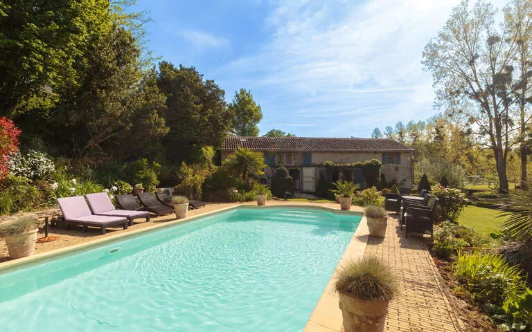 Die Außenbereiche des "Moulin De Mois" sind durchdacht gestaltet, um die natürliche Landschaft rund um das Anwesen zu ergänzen. Der eckige Swimmingpool mit den Maßen 5 x 9 m und einer Tiefe von 100 bis 160 cm ist saisonal vom 1. Juni bis 30. September verfügbar und bietet einen wunderbaren Platz zum Abkühlen und zum Genießen der Sommersonne. Eine Außendusche steht ebenfalls zur Verfügung und ist perfekt positioniert, um Gästen zu dienen, die den Pool und die Gartenbereiche nutzen. Der weitläufige Garten im Rahmen des 5.000 m2 großen privaten Grundstücks bietet eine ruhige und wunderschön gepflegte Umgebung, in der Sie entspannen, spazieren und sich vollständig in die unberührte Landschaft eintauchen können. Die Lage des Anwesens nur 20 m vom Fluss entfernt bereichert das Outdoor-Erlebnis zusätzlich, wobei die sanften Geräusche des fließenden Wassers zum Gesamteindruck von Ruhe und Abgeschiedenheit beitragen.