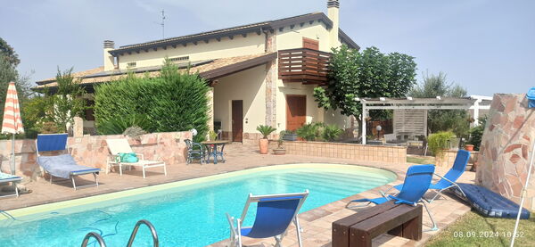 Das Ferienhaus „Rêve d'Or" liegt im ruhigen Stadtteil Madonna della Pace in Città Sant'Angelo, Italien, auf 300 Metern Höhe. Es handelt sich um ein modernes und gemütliches Zweifamilienhaus mit Hauptgebäude und separatem Nebengebäude auf einem vollständig eingezäunten Grundstück von 3.000 Quadratmetern in erhöhter Lage an einem Hang. Das Anwesen bietet einen großzügigen Außenbereich mit gepflegtem Garten, Rasen, Bepflanzung und einem begrünten Innenhof, die eine ruhige und private Atmosphäre schaffen.