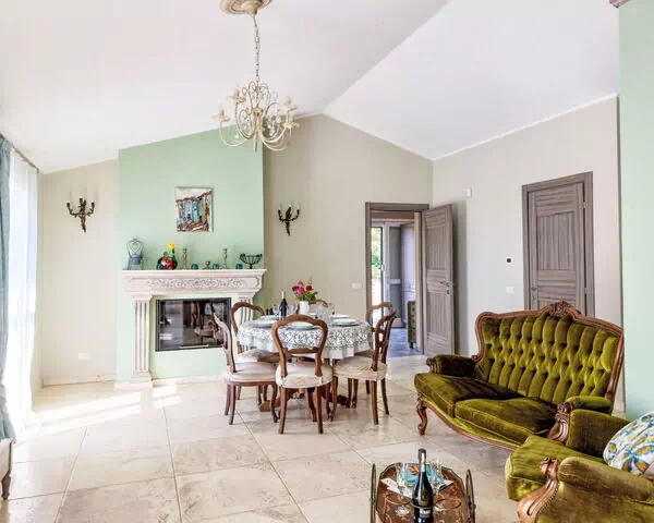 Der Außenbereich der Villa Settimo Cielo ist eines ihrer charakteristischsten Merkmale und bietet einen terrassierten Garten, der sich natürlich über die Hanglage erstreckt. Der Garten ist ungezäunt und in seinem natürlichen Zustand erhalten; er erstreckt sich über die gesamten 1.000 Quadratmeter des Privatgrundstücks und wird von den umgebenden Bäumen und Wiesen gerahmt, die dem Anwesen seinen typischen ländlichen Charakter verleihen. Die erhöhte Position der Villa auf der Kuppe eines Hügels bietet weitläufige Ausblicke auf die umliegende Landschaft. Die natürliche Terrassierung des Gartens schafft unterschiedliche Außenbereiche, in denen Gäste sich entspannen und die friedliche ländliche Umgebung genießen können.