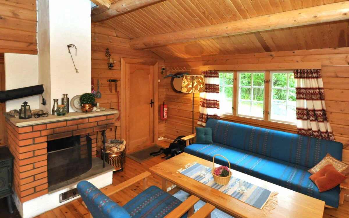 "Fale (FJM028)", 3-Zimmer-Haus 50 m2. Gemütlich und mit viel Holz eingerichtet: Wohn-/Esszimmer mit offenem Kamin, Esstisch, TV, CD, DVD und Holzofen. Ausgang zur Terrasse. 1 Zimmer mit 1 Doppelbett (150 cm, Länge 200 cm). 1 Zimmer mit 1 x 2 Etagenbetten (75 cm, Länge 190 cm). Offene Küche (2 Kochplatten, Geschirrspüler, Toaster, Wasserkocher, Mikrowelle, elektrische Kaffeemaschine) mit Esstisch. Dusche/WC. E-Heizung. Holzböden. Terrasse teilweise überdacht. Terrassenmöbel, Gartengrill (mobil). Sicht auf die Berge und den Fluss. Bitte beachten: Kühlschrank ohne Gefrierfach. Rauchmelder, Feuerlöscher. 924531169