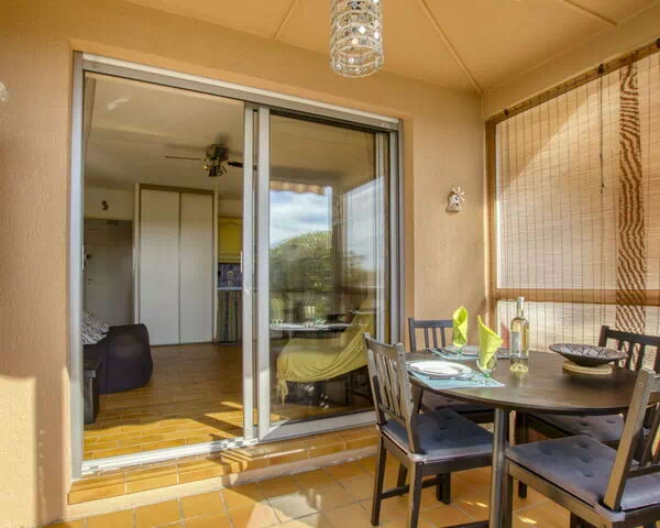 Der Hof der Residenz „Vanille" bietet einen einladenden Außenbereich, in dem die Gäste entspannen und die frische Luft in einer ruhigen Wohnumgebung genießen können. Die Lage in einer Sackgasse sorgt für minimalen Durchgangsverkehr und trägt zu einer friedlichen Atmosphäre im Außenbereich bei. Der Zugang zur Residenz erfolgt über einen Treppenweg mit 16 Stufen.