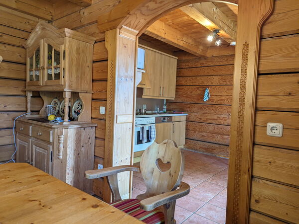 Uriges Chalet "Schachtenbach", umgeben von Bäumen und Wiesen. Im Ortsteil Regenhütte, am Ortsrand, 300 m vom Zentrum, 6.5 km vom Zentrum von Bayerisch Eisenstein, ruhige, sonnige Lage auf einem Hügel, 25 m vom Waldrand, 200 m vom Skigebiet, in einer Sackgasse. Zur Mitbenutzung: Kinderspielplatz (Schaukel, Sandkasten). Zur Alleinbenutzung: Garten 500 m2 mit Rasen und Blumen, Liegewiese. Im Hause: Skiraum, Zentralheizung. Brötchenservice möglich (extra). Treppenweg (3 Stufen) bis zum Haus. Parkplatz (für 2 Autos) beim Haus. Carport. Einkaufsgeschäft, Lebensmittelgeschäft 500 m, Restaurant 100 m, Bahnstation "Ludwigstal" 2 km, Freibad 7 km. Golfplatz (18 Loch) 4 km, Minigolf 4 km, Wanderwege ab Haus 5 m, Skilift 2 km, Skipisten 30 km, Skibushaltestelle 400 m, Langlaufloipe 20 m. Bitte beachten: Fahrzeug empfohlen. Eisenbahnlinie in der Nähe. Das Holzblockhaus ist geschmackvoll mit Massivholzmöbeln im Landhausstil eingerichtet.