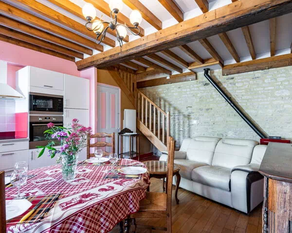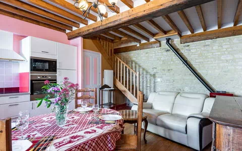 Das Ferienhaus „Sténaïs" umfasst 60 m² auf 2 Ebenen und bietet Platz für bis zu 4 Gäste in 2 Schlafzimmern und 1 Bad. Im Erdgeschoss befinden sich ein Wohn- und Esszimmer mit Esstisch sowie ein separates WC. Das erste Obergeschoss enthält 2 Schlafzimmer, jeweils mit Dachfenster. Das erste Schlafzimmer ist mit einem Französischen Bett ausgestattet, das zweite Schlafzimmer erstreckt sich über zwei Ebenen und verfügt ebenfalls über ein Französisches Bett und ein Dachfenster. Das Bad ist mit einer Dusche ausgestattet. Das gesamte Ferienhaus ist mit Parkettboden ausgelegt.