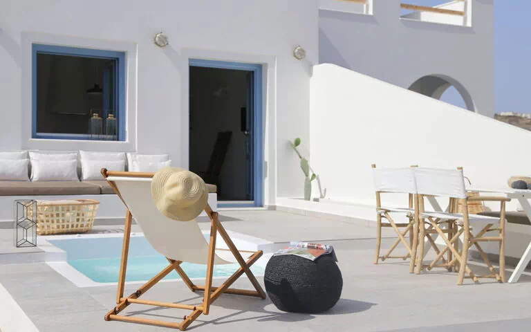 Schöne, alleinstehende, komfortable Residenz "Vino Houses", auf 2 Stockwerken, Baujahr 2016, umgeben von Weinbergen. 3 Wohnungen in der Residenz. Im Ortsteil Oia, alleinstehende, ruhige, sonnige Lage, 1.7 km vom Meer, 1.7 km vom Strand. Zur Alleinbenutzung: Schwimmbad eckig (4 m2, 80 - 150 cm tief, saisonale Verfügbarkeit: 01.Apr. - 31.Okt.). Wäschewechsel 2 mal wöchentlich. Handtuchwechsel 3 mal wöchentlich. Wohnungsreinigung täglich. Frühstück auf Anfrage (inkl.). Parkplatz (für 2 Autos) beim Haus. Lebensmittelgeschäft 1.1 km, Supermarkt 1.1 km, Restaurant 2 km, Bar 2 km, Bäckerei 1.1 km, Café 2 km, Kieselstrand "Baxedes" 1.7 km. Surfschule 13.4 km, Reitstall 17.7 km. Nahe gelegene Sehenswürdigkeiten: Maritime Museum of Oia 5.2 km, Byzantine Castle of Oia 5.4 km, Santorini Folklore Museum 10.2 km, Museum of Prehistoric Thira 12.4 km, Koutsoyannopoulos Wine Museum 14 km. Bitte beachten: Fahrzeug empfohlen. Babyausstattung auf Anfrage (inkl.). Jugendgruppen nur auf Anfrage.