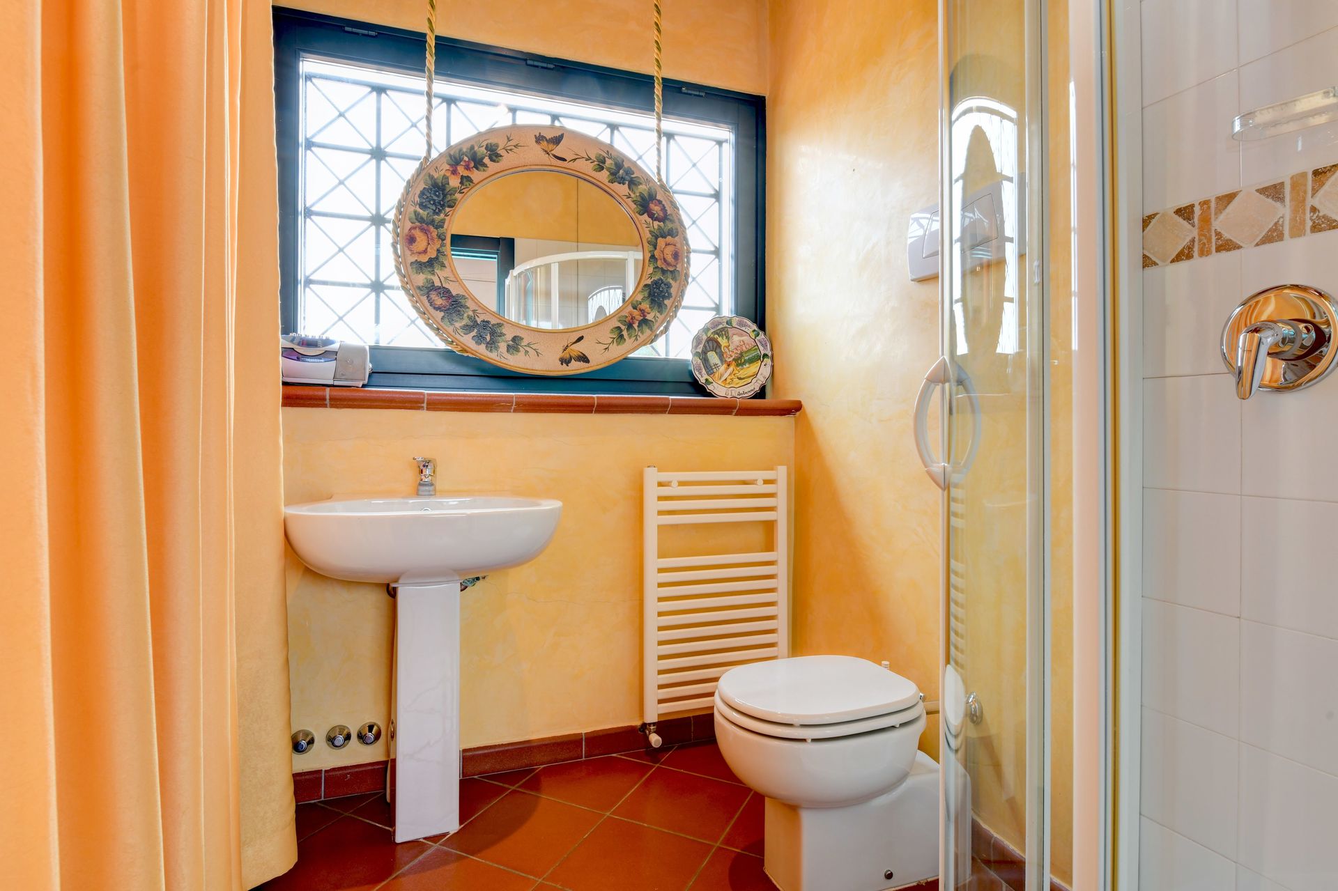 Badezimmer 1: Waschbecken, WC, Bidet, Dusche.