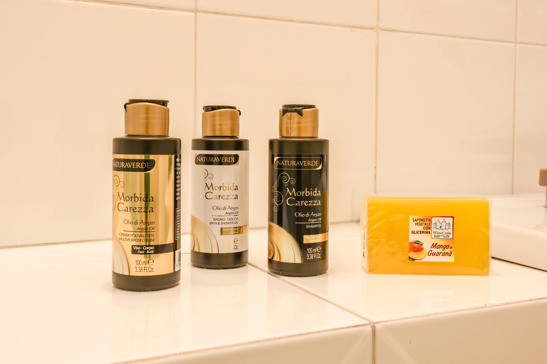 Badezimmer 2: Waschbecken, WC, Bidet, Badewanne.