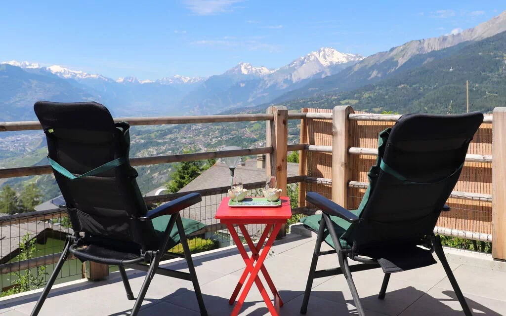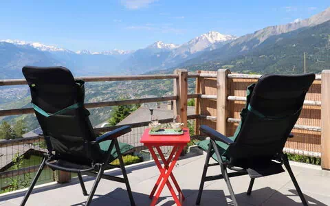 "Chalet La Délège", 4-Zimmer-Chalet 115 m2 auf 2 Stockwerken. Komfortabel und schön eingerichtet: Wohn-/Esszimmer mit offenem Kamin, sep. WC und Kabel-TV. Ausgang zur Terrasse, Richtung Südwesten. Kleine Küche (Backofen, Geschirrspüler, 4 Induktionskochplatten, Toaster, Wasserkocher, elektrische Kaffeemaschine, Kapseln für die Kaffeemaschine (Nespresso) extra, Racletteofen, Fondue Set (Käse)). Obergeschoss: 1 Zimmer mit 1 Doppelbett (2 x 80 cm, Länge 200 cm). Ausgang zum Balkon, Richtung Südwesten. 1 Zimmer mit 1 Doppelbett (2 x 90 cm, Länge 200 cm). Ausgang zum Balkon, Richtung Südwesten. 1 Zimmer, Richtung Norden mit 2 Betten (90 cm, Länge 190 cm). Bad/WC. Grosse Terrasse 40 m2. Terrassenmöbel, Liegestühle (2). Herrliche Sicht auf die Berge und das Tal. Zur Verfügung: Bügeleisen, Babybett, Haartrockner. Internet (Wireless LAN, gratis). Bitte beachten: Nichtraucher-Haus. Zusammenklappbares Babybett, ohne Bettwäsche und Daunen. Maximum: 1 Parkplatz für 1 Auto je nach Verfügbarkeit auf dem Außenparkplatz.