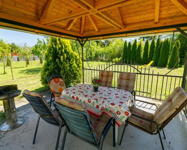 Der Außenbereich von „Csilla" umfasst einen großzügigen, vollständig eingezäunten Privatgarten von 500 Quadratmetern mit einer separaten Liegewiese, die sich ideal zum Sonnenbaden eignet. Der eingezäunte Garten bietet eine sichere und ruhige Umgebung, umgeben von der Grünfläche des Kurorts. Ein Tennisplatz steht in unmittelbarer Nähe, nur 500 Meter vom Anwesen entfernt, zur Verfügung.