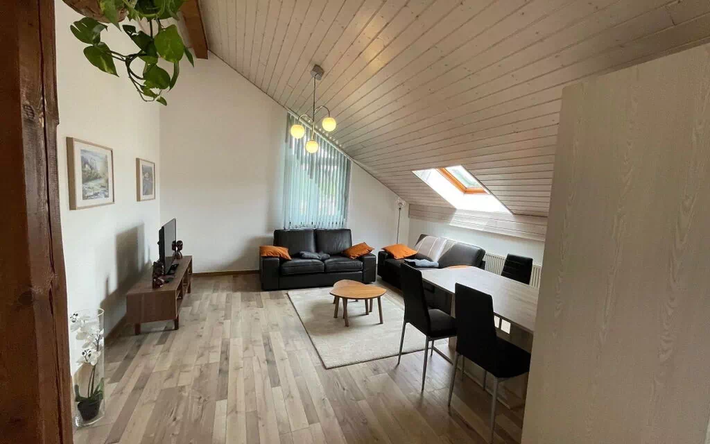 Willkommen bei Achoumé, in einer charmanten, 75 m2 grossen 3,5-Zimmer-Wohnung unter dem Dach. Das Wohnzimmer hat viel Cachet, mit Holz, mit Sicht auf die Berge von mehreren Fenstern und ein Entrée. Zur komplett eingerichteten, zum Wohnzimmer offenen Küche gehören: Esstisch, Teekessel, Kapsel-Kaffeemaschine mit offerierten Kapseln, Mikrowelle, Ofen, 4 Kochplatten, Pfannen und Töpfe. In den Schränken befinden sich Küchenutensilien und Geschirr für 4 Personen. Im Wohnzimmer stehen 2 Ledersofas und der Fernseher. Verschiedene Sender und WLAN sind vorhanden. Zwei Doppelzimmer, davon eines mit 2 Matratzen à 90 x 200 und das zweite mit einer Matratze à 140 x 200, versprechen erholsamen Schlaf. In der Wohnung gibt es ein Badezimmer mit Badewanne, Lavabo, WC und Haartrockner und ein separates WC mit Lavabo. Bettwäsche aus Seide und Baumwolle, Bad- und Küchenwäsche, Bügeleisen mit Bügelbrett, Staubsauger in der Unterkunft. Zur gemeinsamen Nutzung im Gebäude: Lift, Waschküche und Waschmaschine. Diese Wohnung im Herzen von Porrentruy, mit guter öV-Anbindung, in der Nähe des Stadtzentrums mit seinen Restaurants und Geschäften, ist für Ferien ebenso geeignet wie für eine Geschäftsreise. Sie liegt in der Nähe der Natur und verschiedener Aktivitäten. Im Freien stehen ein Privatparkplatz für Ihren Wagen und ein gemeinsamer Garten zur Verfügung. Mit dem Jura-Pass können Sie die öffentlichen Transportmittel kostenlos benutzen und bei zahlreichen Aktivitäten in der Region von Vergünstigungen profitieren!