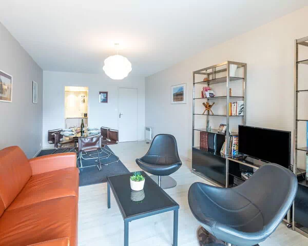 Die Residenz „Le Galion" ist eine elegant gelegene Ferienwohnung im Herzen von Dinard in der Bretagne. Das Anwesen befindet sich in einem gepflegten fünfgeschossigen Gebäude nur 150 Meter vom Meer und dem Sandstrand „L'Ecluse" entfernt. Die zentrale Lage ermöglicht unmittelbaren Zugang zu Dinards Küstencharm. Das Gebäude ist mit einem Aufzug ausgestattet.