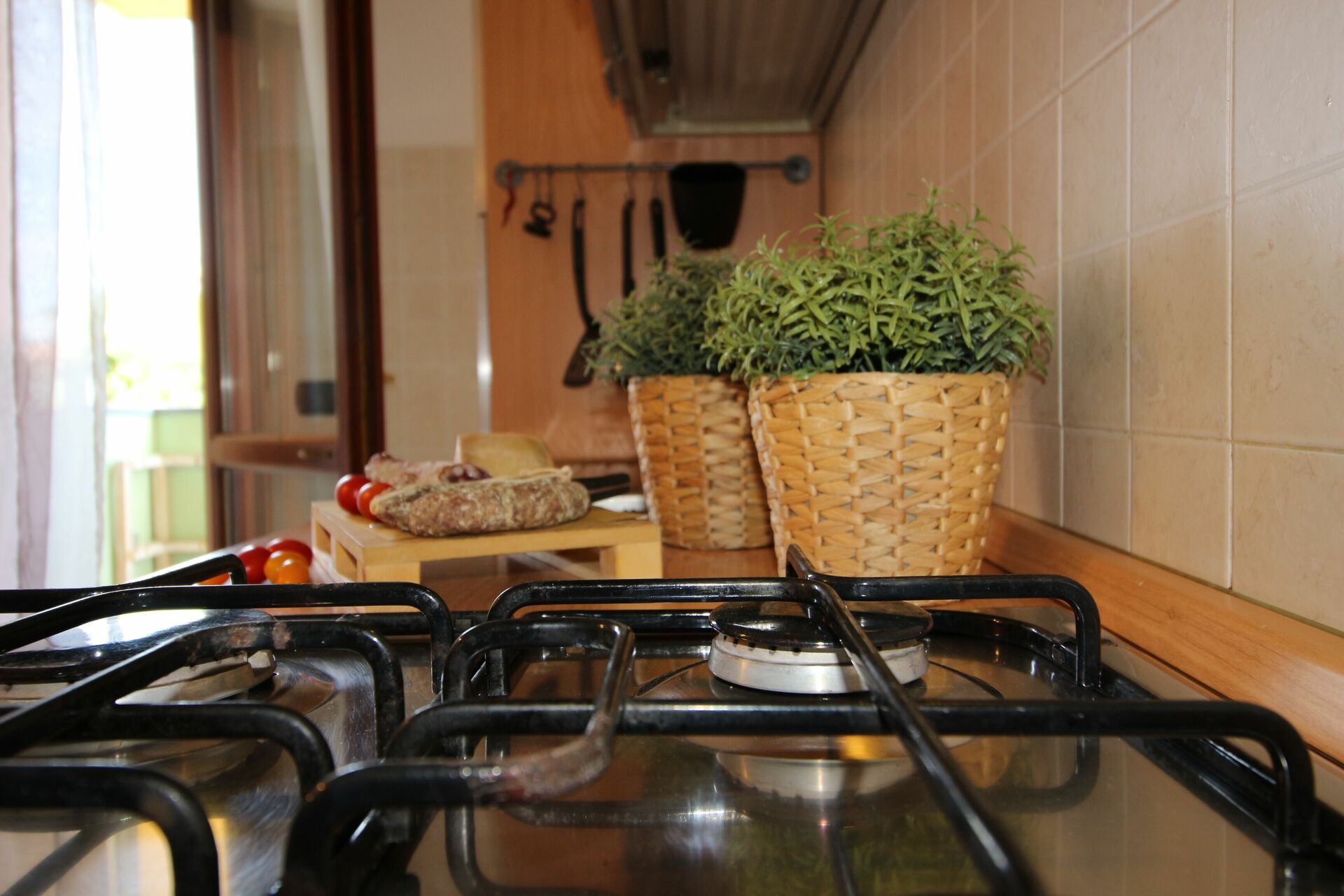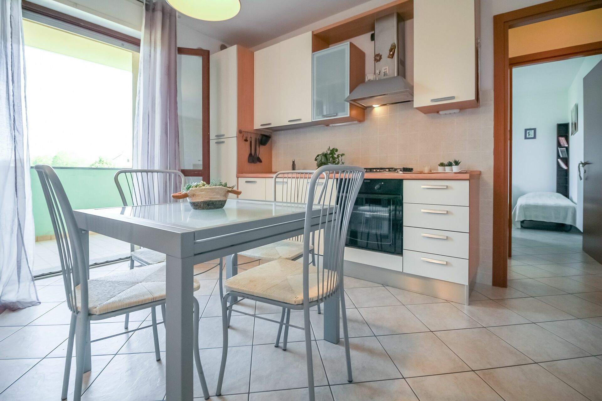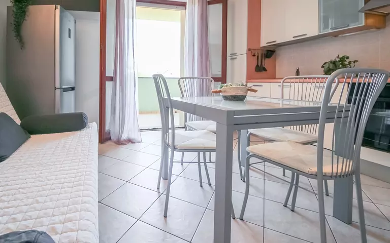 Wohnküche (20 m2): gut ausgestattete Küche, Esstisch, Spülmaschine, Kühlschrank, Tiefkühler, Ofen, Toaster, Italienische Kaffeemaschine, Amerikanische Kaffeemaschine, Sofa, Doppel-Schlafsofa, Satelliten-TV, tragbarer Ventilator, Ausgang auf den Balkon.