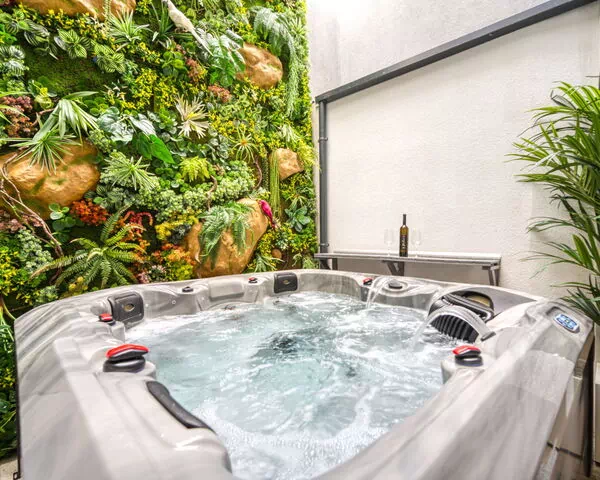 Das Anwesen liegt auf einem großzügigen, vollständig eingezäunten Grundstück von 550 m². Der gemeinsame Außenbereich bietet ausreichend Platz zum Entspannen und Erholen in der sonnigen Umgebung. Ein privater Hot Tub steht den Gästen zur Verfügung und ermöglicht es, sich zu entspannen und die angenehme Atmosphäre des Außenbereichs zu genießen. Die eingezäunte Umgrenzung gewährleistet Privatsphäre und Sicherheit.