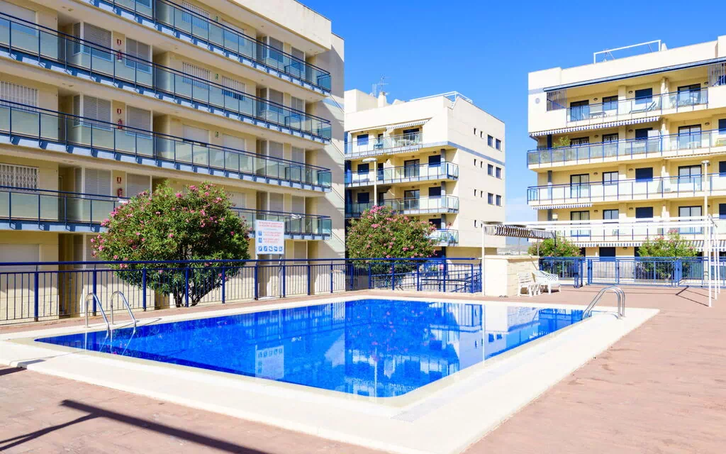 Residenz "Las Dunas". Im Ortsteil Chilches, ruhige, sonnige Lage, vom Meer, 50 m vom Strand. Zur Mitbenutzung: Schwimmbad eckig (5 x 10 m, 140 - 220 cm tief, saisonale Verfügbarkeit: 01.Jun. - 30.Sep.). Aussendusche. Im Hause: Fahrstuhl. Parkplatz (überdacht) beim Haus, öffentliche Parkplätze auf der Strasse. Lebensmittelgeschäft 700 m, Restaurant, Bar, Café 50 m, Bushaltestelle 3.6 km, Bahnstation 4.3 km.
