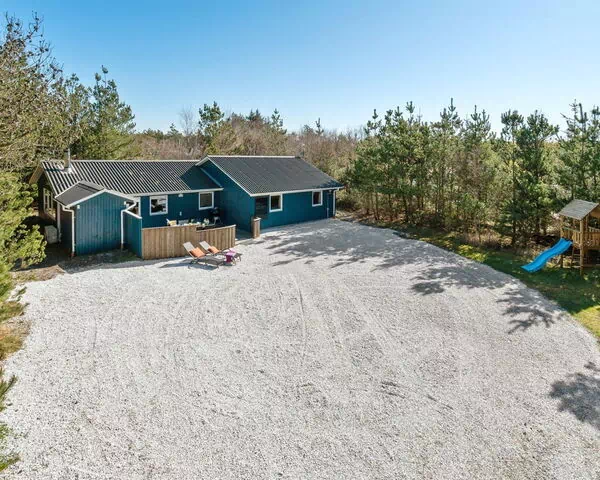 Die Terrasse misst 30 m² und eignet sich ideal für Mahlzeiten im Freien oder zum Entspannen an der frischen Luft. Das naturbelassene Grundstück von 1.350 m² umgibt das Haus und schafft eine ruhige, unberührte Atmosphäre. Für jüngere Gäste steht ein Kinderspielplatz mit Rutsche und Schaukel zur Verfügung.