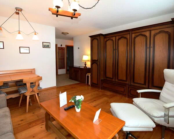 Die Außenbereiche von Alpenhof 10 umfassen eine großzügige und gepflegte Terrasse mit Garten in südlicher Ausrichtung, die sich ideal zum Entspannen in der Sonne, zum Essen im Freien oder zum Genießen der alpinen Landschaft eignet. Das Schlafzimmer hat direkten Zugang zu einem eigenen privaten Balkon mit ruhiger und intimer Atmosphäre. Das Anwesen liegt in der Nähe des Waldes, was die natürliche Schönheit und den friedlichen Charakter der Umgebung unterstreicht.