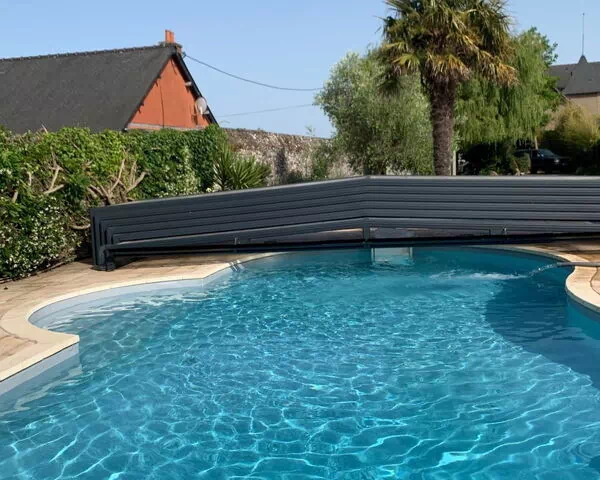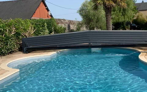 Die Terrasse misst 100 m² und ist mit Gartenmöbeln ausgestattet; ein Barbecue steht zur Verfügung. Der nierförmige Pool wird regelmäßig vom Eigentümer und Gärtner gepflegt und bleibt vom 1. Mai bis 1. September in gutem Zustand. Der eingezäunte Garten von 1.000 m² mit Rasenflächen und schattigen Bäumen bietet einen privaten Rückzugsort.
