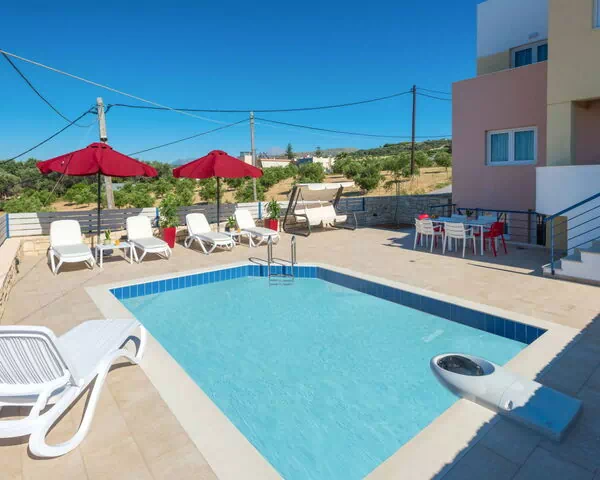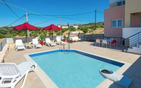 Schöne, komfortable Villa "Fragika II", auf 3 Stockwerken, einseitig angebaut. Im Ortsteil Agia Paraskevi, 650 m vom Zentrum von Adele, 8.6 km vom Zentrum von Rethymnon, ruhige, sonnige Lage, 3.2 km vom Meer, 3.2 km vom Strand. Zur Alleinbenutzung: schöner, gepflegter Terrassengarten mit Blumen und Bäumen, Schwimmbad eckig (15 m2, 120 cm tief, saisonale Verfügbarkeit: 01.Apr. - 31.Okt.). Parkplatz beim Haus. Lebensmittelgeschäft 1 km, Supermarkt 1 km, Restaurant 1 km, Bar 3.2 km, Bäckerei 1 km, Café 1 km, Sandstrand "Adelianos Kampos" 3.2 km. Jacht-Hafen 7.9 km, Golfplatz (18 Loch) 102 km, Reitstall 4.3 km. Nahe gelegene Sehenswürdigkeiten: Monastery of Arkadi 13.3 km, Eleftherna Archaeological Museum 17.9 km, Military Museum of Chromonastiri 12.5 km, Melidoni Cave 30.3 km, Venetian Castle of Fortezza 9.2 km, Archaeological Museum of Rethymnon 8.8 km. Bekannte Seen in der Umgebung sind gut erreichbar: Kournas 32 km. Bitte beachten: Fahrzeug empfohlen. Geeignet für Familien, Babyausstattung auf Anfrage (inkl.). Jugendgruppen nur auf Anfrage. Weitere Unterkünfte sind buchbar. Ferienwohnung Ref. GR6506.18.1 befindet sich auf dem gleichen Grundstück. Die Mietobjekte können sich in Lage, Größe und Beschaffenheit des Grundstücks unterscheiden. Die Mietobjekte können sich in Wohnfläche, Raumaufteilung, Ausstattung und Einrichtung unterscheiden.