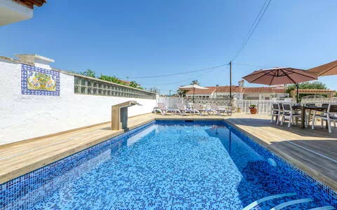 Schönes, komfortables Haus "Roanne" im Jahre 2014. Im Ortsteil Alberes, 800 m vom Zentrum von Empuriabrava, ruhige, sonnige Lage im Villenviertel, verkehrsberuhigte Zone, 1 km vom Meer, 200 m vom Kanal. Zur Alleinbenutzung: Grundstück (eingezäunt), Garten, Schwimmbad eckig (7 x 3 m, 160 cm tief, saisonale Verfügbarkeit: 01.Mai. - 30.Okt.). Aussendusche, Terrasse, Gartenmöbel, Grill, Parkplatz (für 2 Autos). Einkaufsgeschäft 240 m, Lebensmittelgeschäft 300 m, Supermarkt 240 m, Einkaufszentrum 500 m, Restaurant 400 m, Bar 300 m, Bäckerei, Bushaltestelle 3 km, Sandstrand "Empuriabrava" 1 km. Sporthafen 2.6 km, Golfplatz (18 Loch) 15 km, Segelschule 1.5 km, Tennis 2.2 km, Minigolf 2 km, Radweg 500 m. Nahe gelegene Sehenswürdigkeiten: Túnel de viento y Skydive Empuriabrava 2 km, Parque Acuático Aquabrava Roses 6 km, Museo Dalí Figueres 12 km, Ruinas de Empuries 23 km, Castillo Peralada Golf 18 km, Monasterio de Sant Pere de Rodes 23 km. Der Besitzer akzeptiert keine Jugendgruppen. Die Schlüsselübergabe findet bei der Agentur Interhome in Empuriabrava statt.