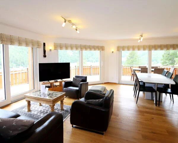 Der große südausgerichtete Balkon vom Wohnzimmer bietet einen atemberaubenden Panoramablick auf die Berglandschaft. Zwei der drei Schlafzimmer verfügen über eigene private Balkone mit Blick auf die frische Bergluft. Die Ski-in-Ski-out-Lage bedeutet, dass die Pisten direkt vom Anwesen aus erreichbar sind; Gäste können morgens hinausgehen und die Pisten erreichen, bevor sie offiziell öffnen, und abends direkt nach der letzten Fahrt des Lifts zur Tür zurückfahren. Das Anwesen liegt neben den Anfängerpisten und eignet sich besonders für Familien oder diejenigen, die ihre Skifähigkeiten entwickeln möchten.