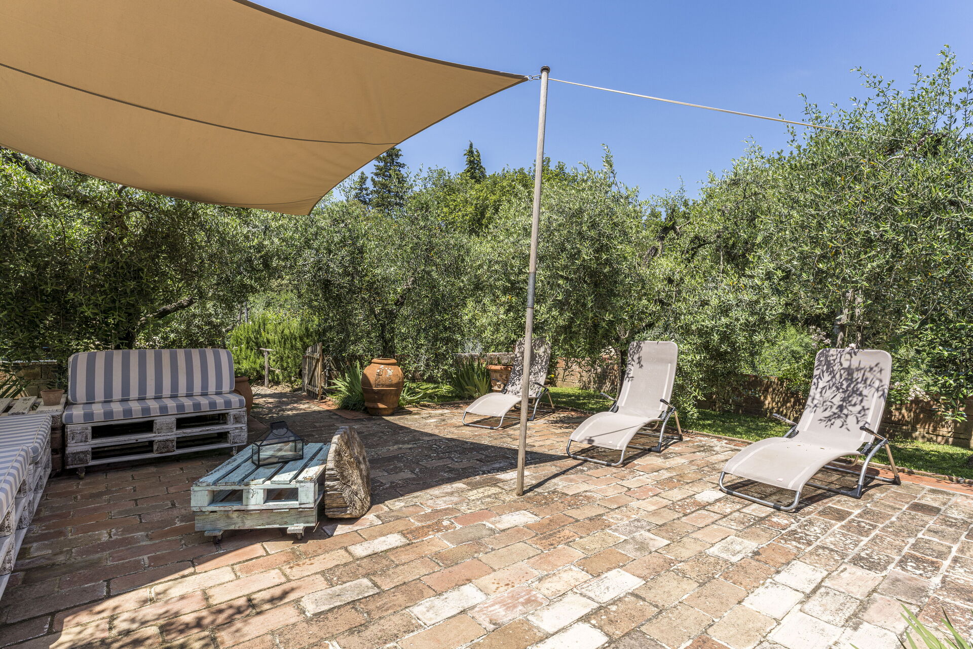 Garten: Schwimmbad (Breite: 6m, Länge: 10m, max. Tiefe: 1.6m), Dusche, WiFi Internet, Grill, Außenbereich für das Essen im Freien, Esstisch, Gartenmöbel.