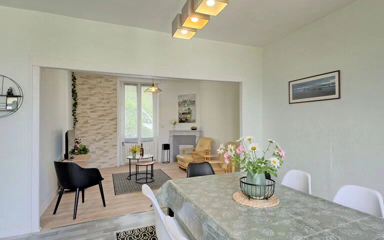 "L'escapade", 3-Zimmer-Reihenhaus 50 m2 auf 2 Stockwerken, im erhöhten Erdgeschoss. Renoviert im Jahre 2023, schön und gemütlich eingerichtet: Wohn-/Esszimmer mit Esstisch und TV (Flachbildschirm). 1 Zimmer mit 1 franz. Bett (140 cm, Länge 190 cm). Kochnische im Eingang (1 Kochplatte, Backofen, 3 Flammen, Toaster, Wasserkocher, elektrische Kaffeemaschine). Dusche/WC. G-Heizung. Obergeschoss: (steile Treppe) 1 Zimmer mit 2 Betten (90 cm, Länge 190 cm). Terrassenmöbel, Gartengrill, Liegestühle (2), Abstellkammer. Zur Verfügung: Waschmaschine, Bügeleisen. Internet (WLAN, gratis). Bitte beachten: Nichtraucher-Haus. Rauchmelder. Inserat einer Privatperson nach Artikel 155, IV, CGI. 56007 000117 U6