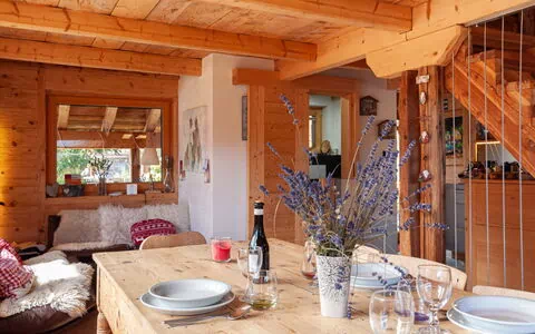 Die Küche ist mit einem Backofen, 4 Induktionskochfeldern, Toaster, Wasserkocher, elektrischer Kaffeemaschine, Geschirrspülmaschine und Mikrowelle ausgestattet. Das Chalet wird durch einen skandinavischen Holzofen beheizt; eine Waschmaschine steht zur Verfügung. Zur Unterhaltung ist ein Kabelfernsehgerät im oberen Galeriebereich vorhanden. Die Terrasse ist mit Terrassenmöbeln und 2 Liegestühlen ausgestattet; ein Käsefondue-Set ist vorhanden. Wi-Fi ist kostenlos verfügbar. Nespresso-Kapseln sind gegen Aufpreis erhältlich.