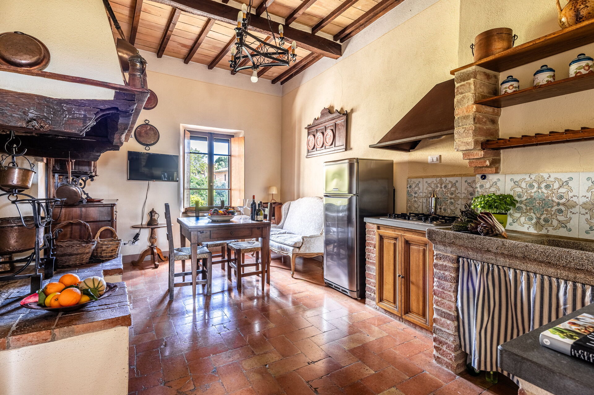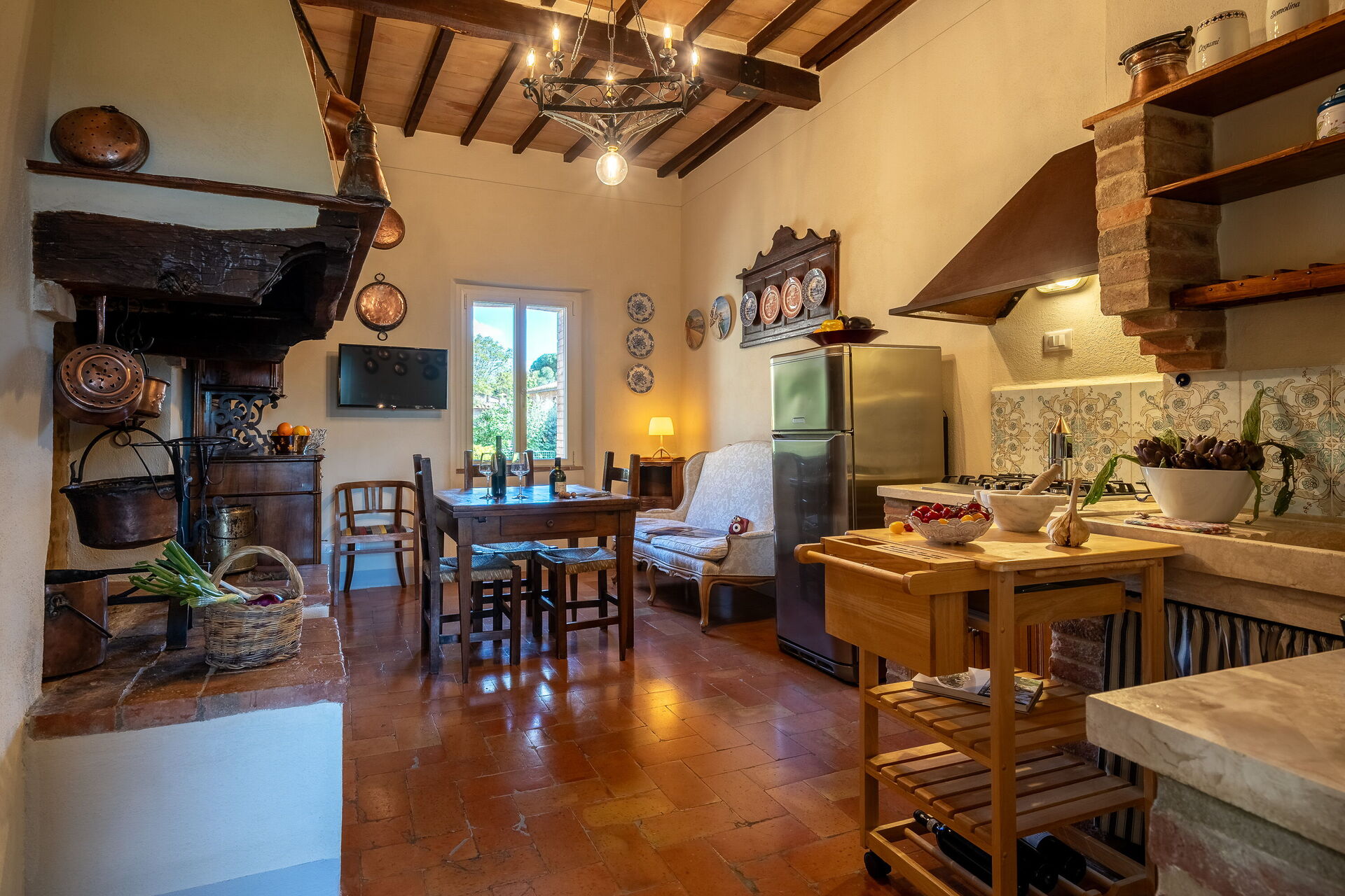 Nach Ankunft werden Sie eine reizende, saubere und gut gepflegte Unterkunft finden, mit Ausblick auf die Hügellandschaft erstklassig für einen entspannenden Toskana-Urlaub. Zum Vergnügen gibt es hier einen privaten Garten wo Sie sich nach Ihrem beschäftigten Tag, den Sie mit Sightseeing verbracht haben, erholen können, während Sie ein erfrischendes, kühles Getränk zu sich nehmen. Ein echter Vorteil einer privaten Ferienunterkunft, im Gegensatz zu mehreren Hotelzimmern, ist, dass Sie nach einem anstrengenden Tag, den Sie mit Sightseeing verbracht haben, gemeinsam mit Freunden und Familie entspannen können. Essen Sie zusammen und genießen Sie den lokalen Wein, um den Tag ausklingen zu lassen. Speisen mit Freunden und Familie ist ein großer Bestandteil der toskanischen Kultur. Nutzen Sie die gut ausgestattete Küche, um Mahlzeiten aus lokalen Produkten vorzubereiten, während Sie im Urlaub sind. Die Küche kommt mit Kaffeemaschine, Herd und Kühlschrank, sowie ausreichend Geschirr und Besteck für bis zu vier Personen.