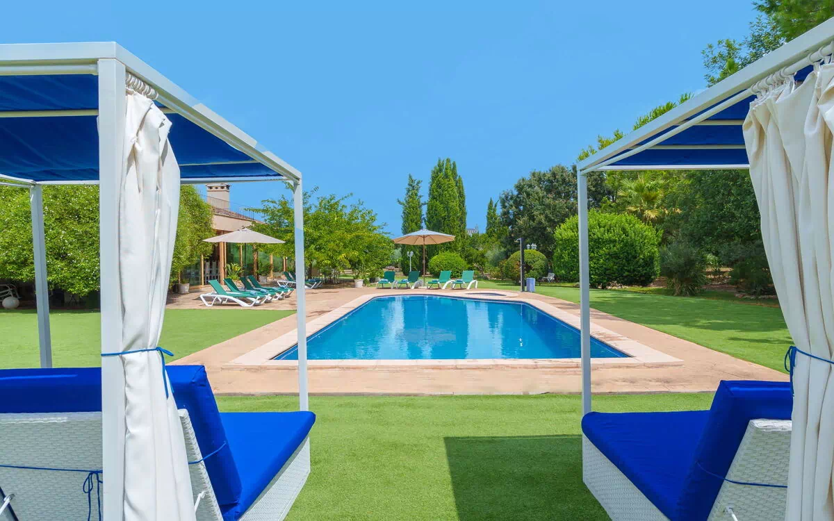 Sehr grosse, komfortable Villa "La Forca", auf 2 Stockwerken. Ausserhalb des Ortes, 1 km vom Zentrum von Santa Margalida, ruhige, sonnige Lage, 11 km vom Meer, im Grünen. Zur Alleinbenutzung: naturbelassenes Grundstück 14'000 m2 (eingezäunt), grosser Garten mit Rasen und Bäumen, Schwimmbad (12 x 6 m, 100 - 180 cm tief, saisonale Verfügbarkeit: 01.Jan. - 31.Dez.). Kinderbecken, Aussendusche, Tischtennis, Sitzplatz, Laube, Pergola, Gartenmöbel, Grill, Grillhaus, Poolpflege durch den Besitzer/Gärtner. Im Hause: Internetzugang, Wireless LAN, Einstellraum für Fahrräder, Klimaanlage. Parkplatz beim Haus auf dem Grundstück. Supermarkt 1.4 km, Restaurant 1.2 km, Bar 1.2 km, Bäckerei 1.5 km, Zentrum zu Fuss in 20 Minuten erreichbar, Bushaltestelle "Plaça de la Vila, Santa Margalid" 1.2 km, Bahnstation "Muro" 8 km, Fähre "Port d'Alcúdia" 18.2 km, Sandstrand "Can Picafort" 11 km. Sporthafen 11 km, Golfplatz (18 Loch) 22 km, Radweg 500 m. Nahe gelegene Sehenswürdigkeiten: Can Picafort-Son Serra-Santa Margarita, Palma de Mallorca 53 km, Hidropark Aquatic Park 20 km, Mallorca Fashion Outlet % Cinemas 45 km. Wandergebiete: Finca Pública Son Real, Parc Natural de Farrutx, S'Albufera de Mallorca. Bitte beachten: Fahrzeug empfohlen. Objekt geeignet für 10 Erwachsene Jugendgruppen nur auf Anfrage. Tiere in der Umgebung. Flugplatz 57 km vom Haus.